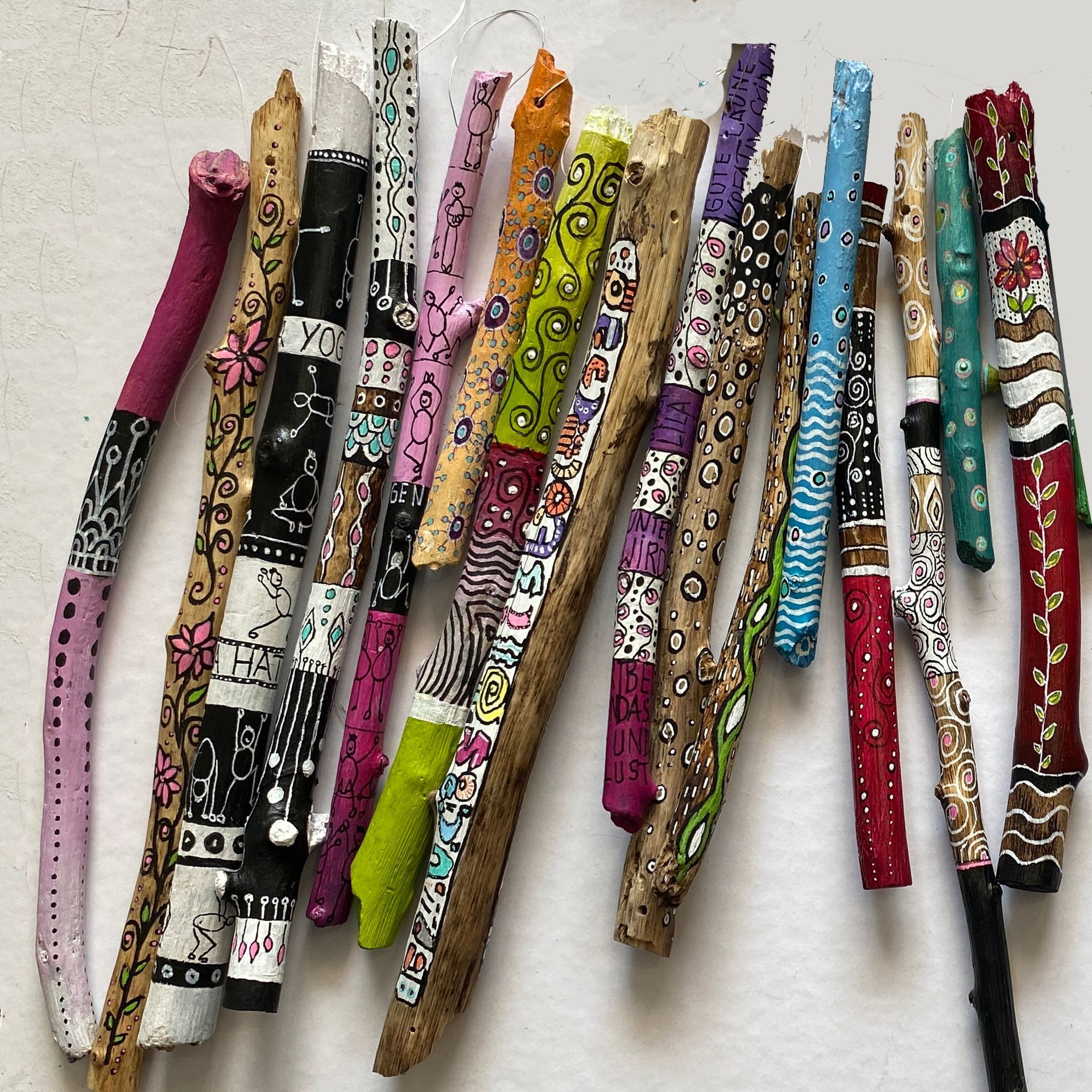 Diese einzigartigen Schätzchen kreiere ich aus Holzästen, die ich im Wald finde. Sie werden gesäubert, zugeschnitten, gefeilt, grundiert, liebevoll und detailreich bemalt und anschließend noch lackiert. Sie sind ca. 5 cm hoch und haben einen Durchmesser von ca. 1,2 cm.